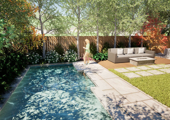 3D visualizations help homeowners clearly understand how patios, pools, planting, lighting, and structures may look once completed.